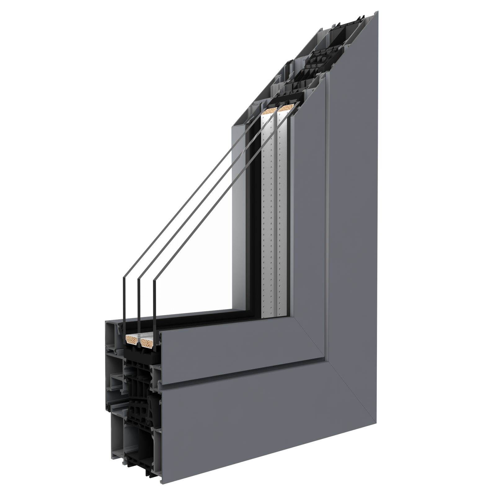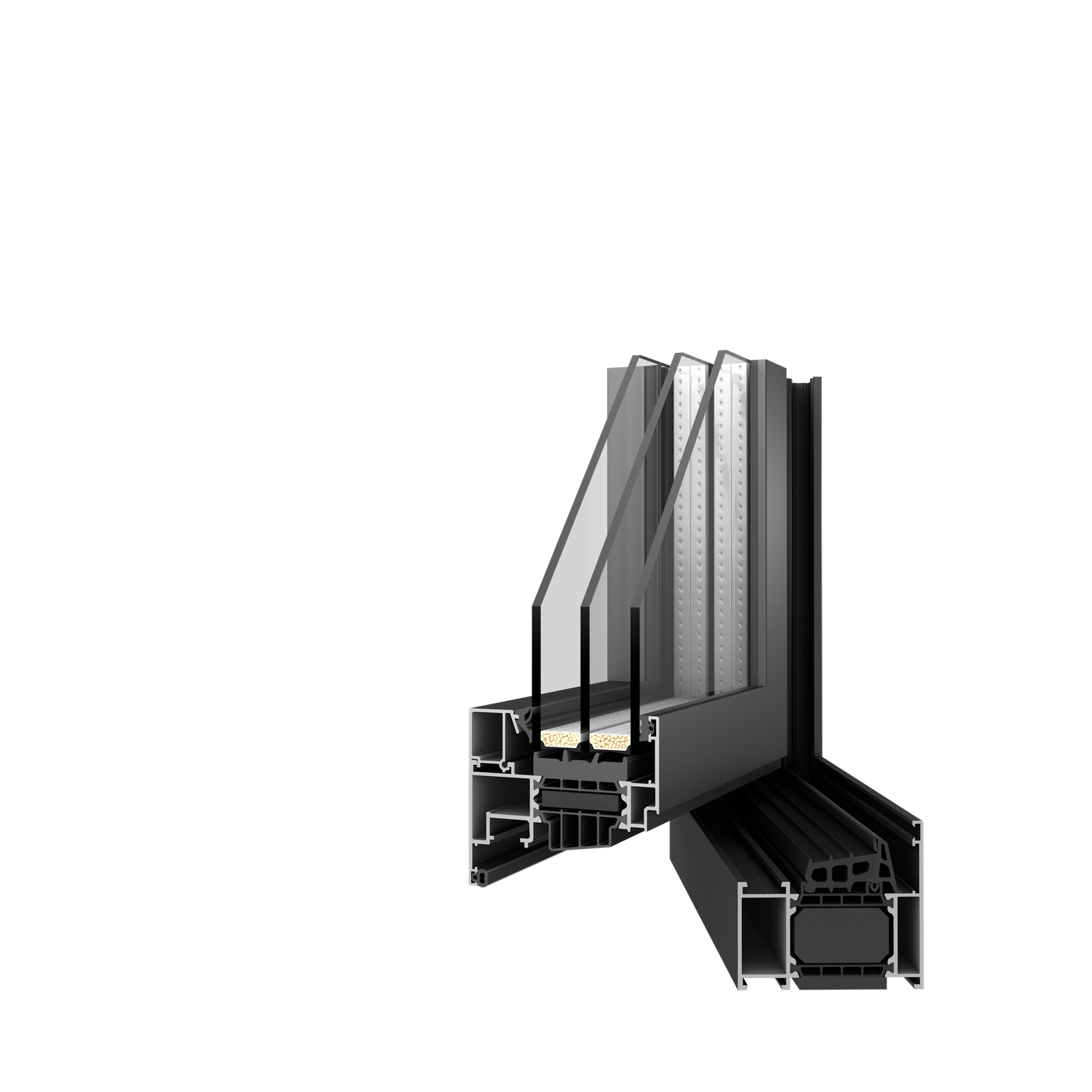 • Energinis efektyvumas (SI): Geriausią šilumos izoliaciją užtikrina platūs profiliai su papildomais polistireninio putplasčio (EPS) izoliaciniais įdėklais bei specialios formos termopertvaromis.