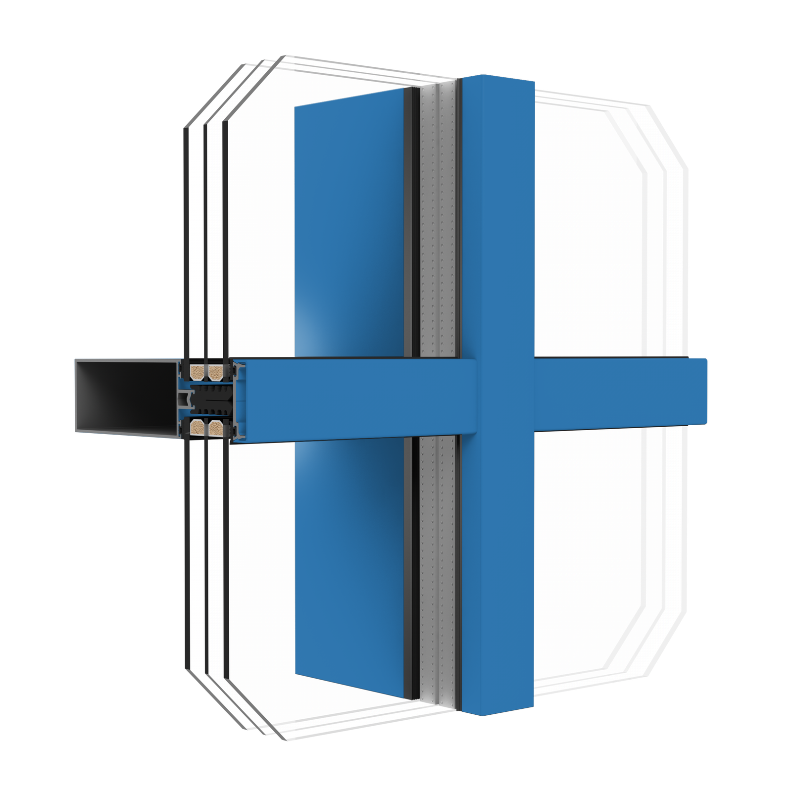 • Šilumos perdavimas: Sistemos Uf koeficientas gali siekti vos 0,59 W/(m²K), kas leidžia pasiekti bendrą lango/fasado šilumos perdavimo koeficientą Uw nuo 0,78 W/(m²K).