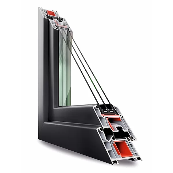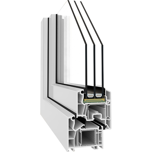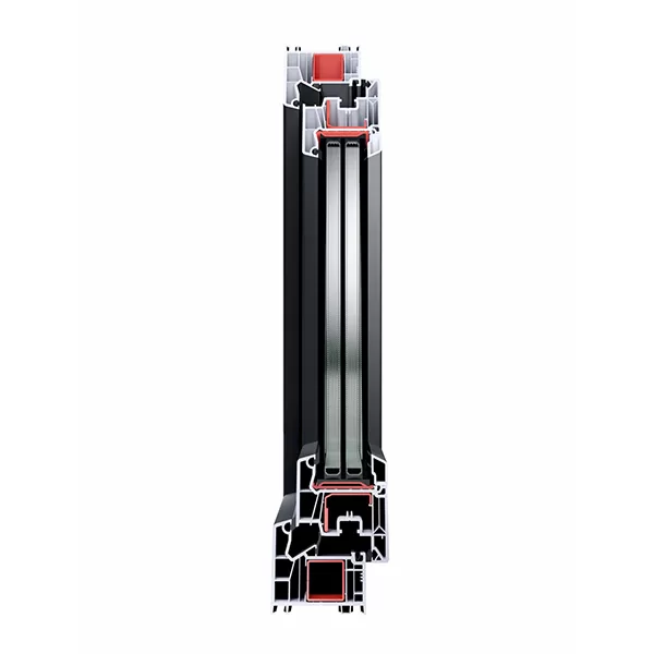 • Energinis efektyvumas: Nepaisant mažesnio (nei 82 mm) gylio, sistema pasiekia puikius šilumos laidumo koeficientus. Profilio šilumos pralaidumo koeficientas (Uf) siekia iki 1,1 W/(m²K), o su atitinkamu trijų stiklų paketu, viso lango (Uw) vertė gali būti apie 0,81 W/(m²K) ar geriau.