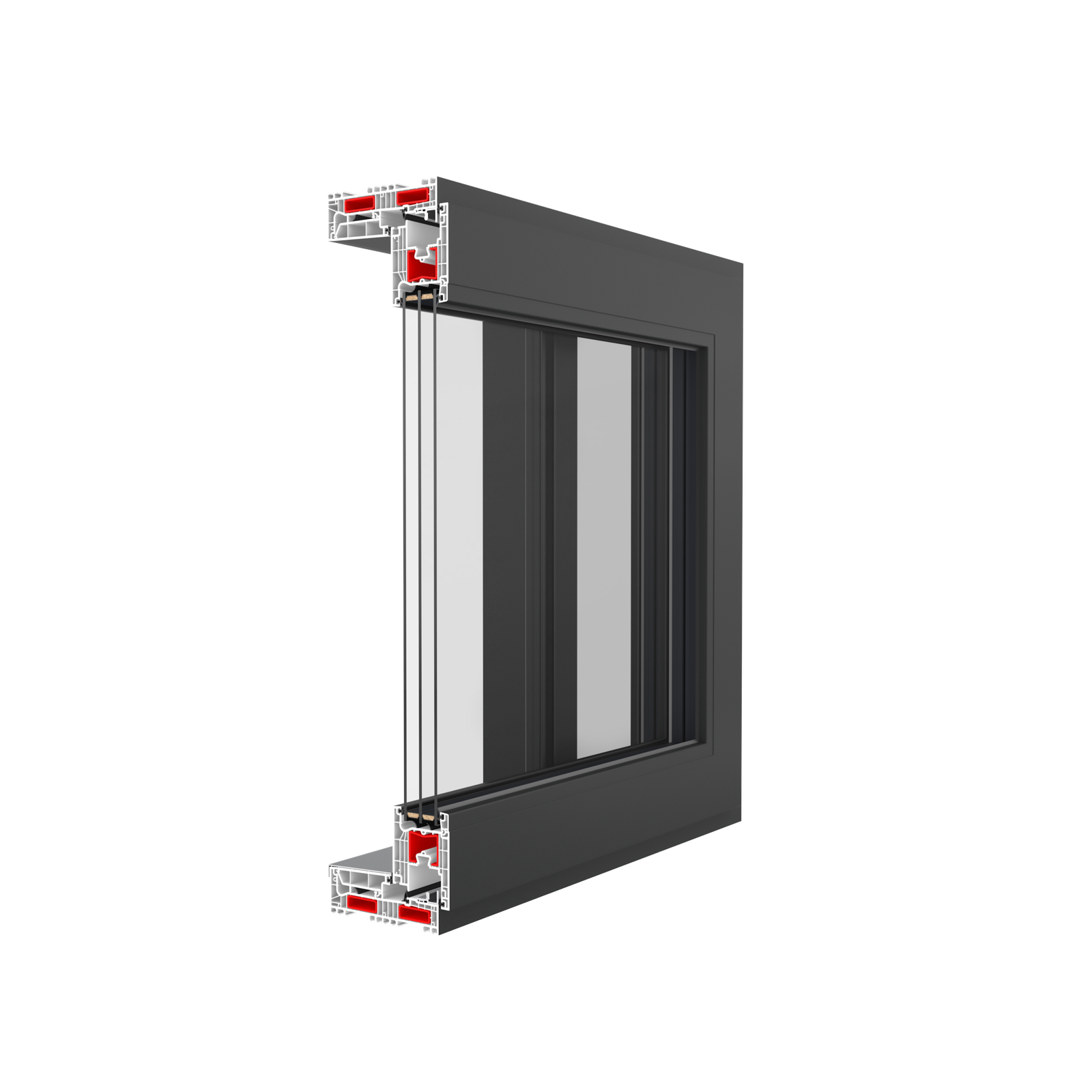 • Dizainas: Profiliui būdinga itin plona ir kampinė struktūros linija, kuri vizualiai didina stiklo paviršiaus plotą, taip užtikrinant daugiau natūralios šviesos patekimo į patalpas.